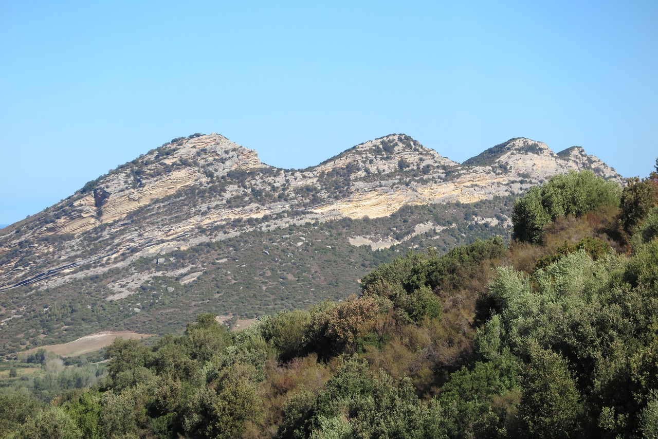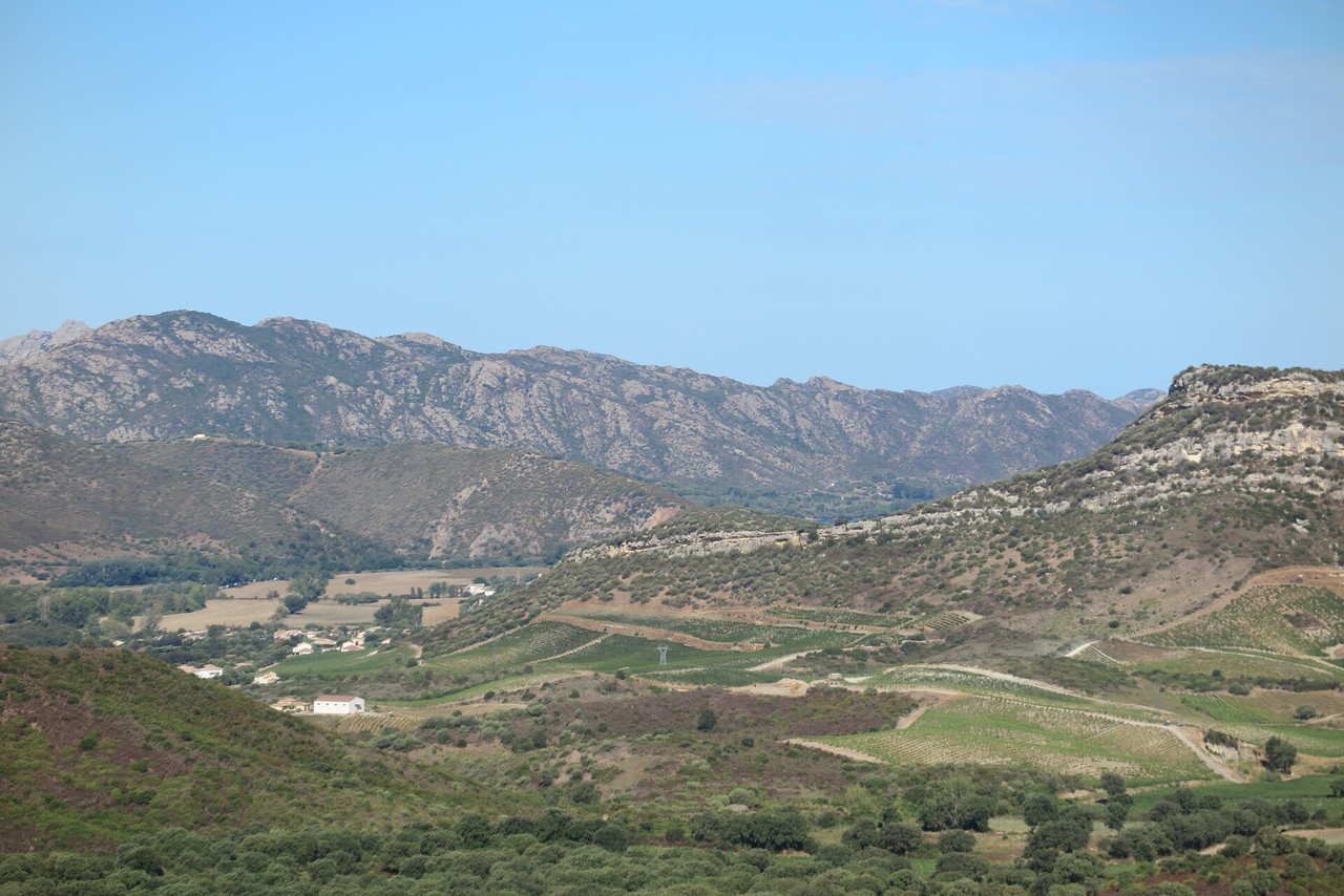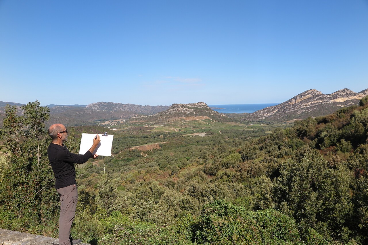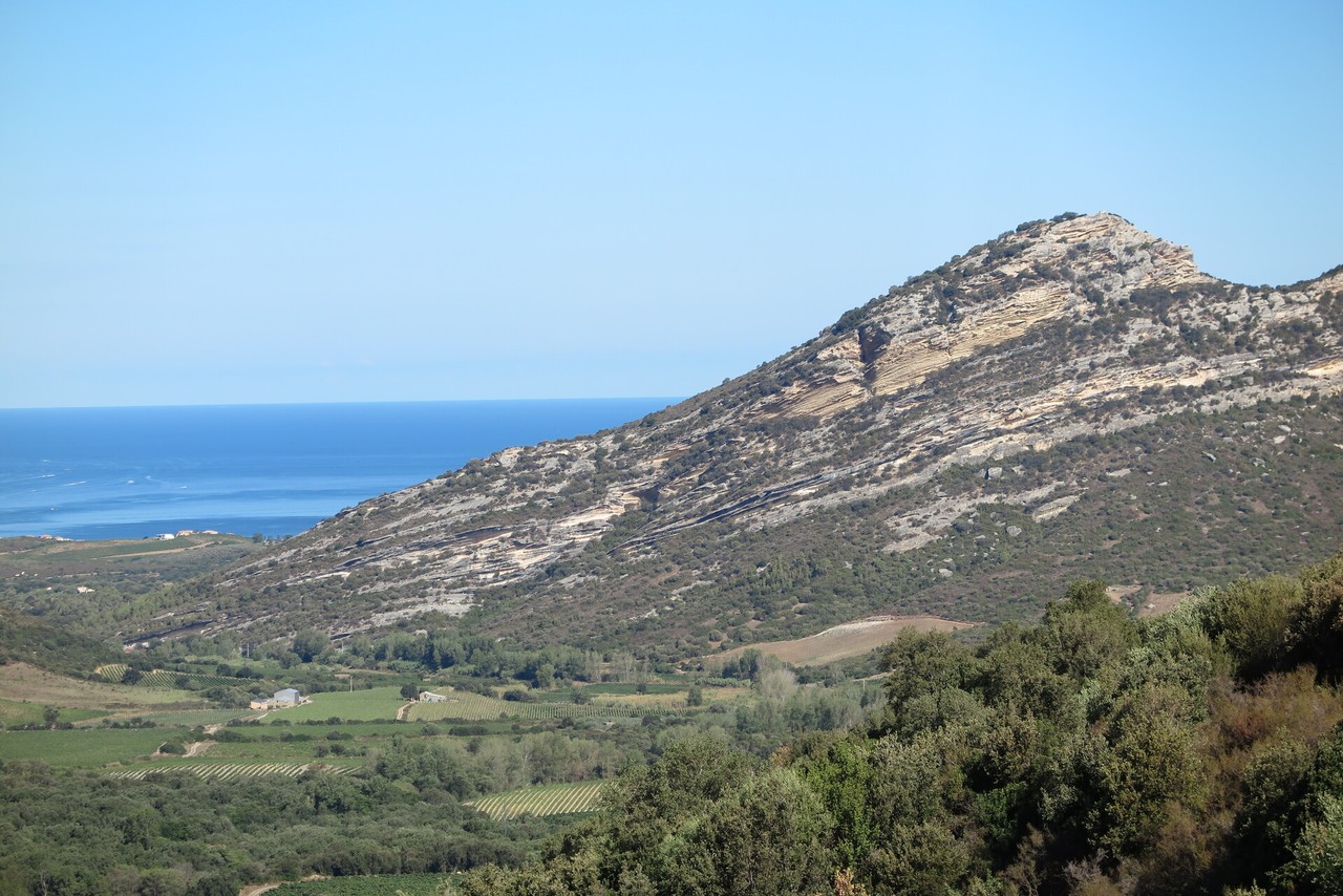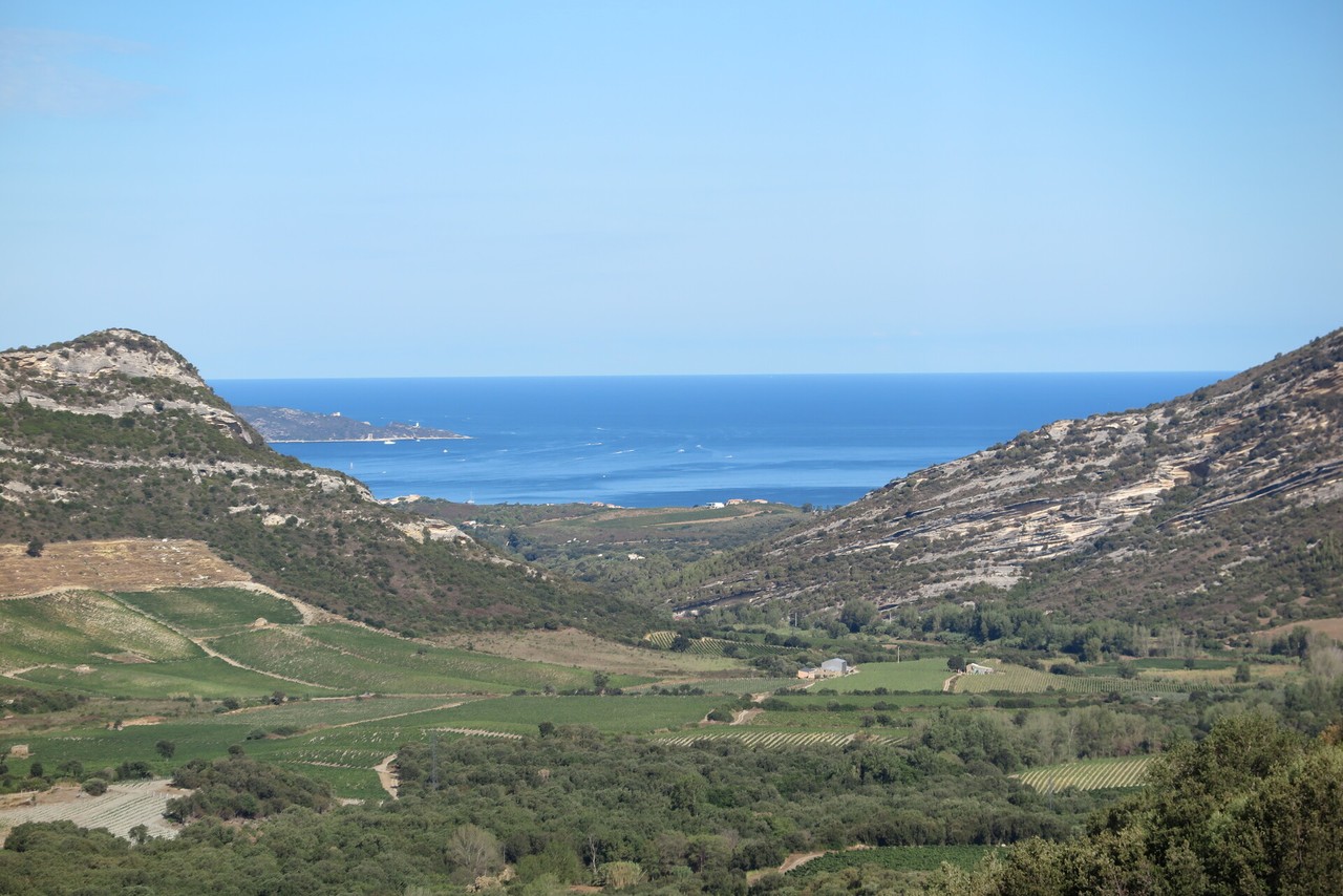 This first provides a panoramic overview of the bay of Saint-Florent and of its surrounding geological formations. Towards the west, two main topographic formations stand out, with visible planar structures. The more distant Tenda massif, west of the bay, dips to the east. In contrast, the Miocene Limestones, east of the bay, dip to the west.