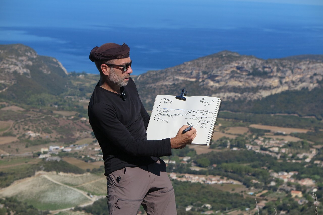 The topography in the west is fairly flat except for two features: The Tenda massif and the steep face of light limestones. In contrast, the landscape of the Cap Corse is steeper… and either rather bushy (at low elevation) or bold (in fact where brownish peridotite is exposed).